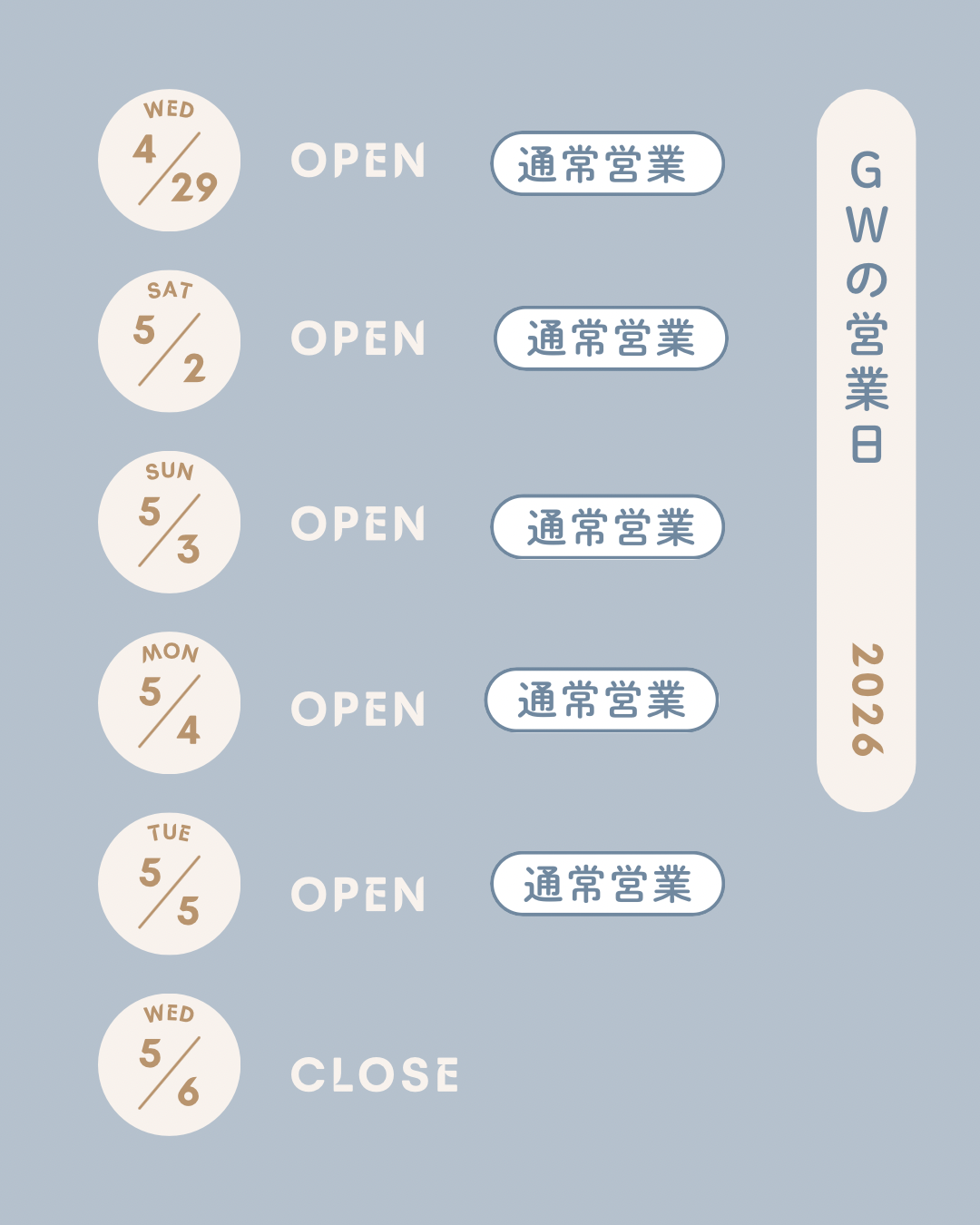 また、GWも6日(水)以外は通常スケジュールです✏️