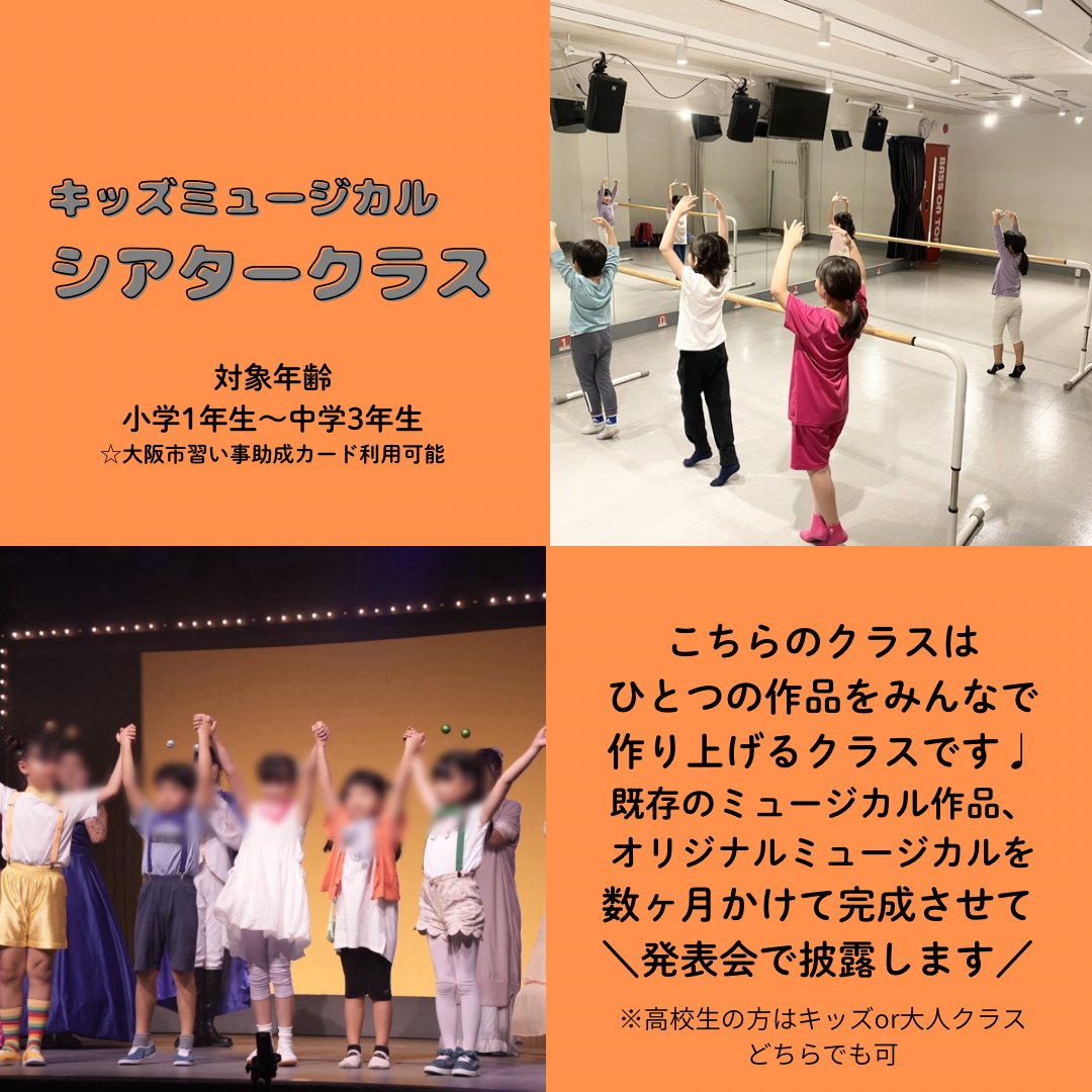 体験レッスン料は2,500円、キッズミュージカルシアタークラスは大阪市習い事・塾代助成カードをご利用いただけます❣️